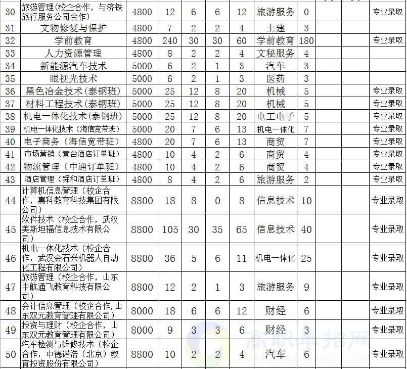 录取过程中,不按照专业计划数录取的专业(包含技术技能类),根据学院录取分数线上的考生志愿,分别调整专业之间招生计划进行录取,调整录取人数不超过学院单招总计划数。